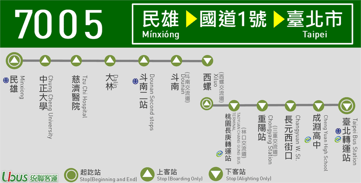 【7005】民雄 → 國道1號 → 臺北市 (西螺站換車接駁)