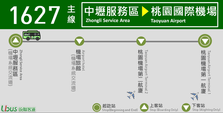 【1627】(主) 中壢服務區→臺灣桃園國際機場(機場接駁路線,不單獨售票)