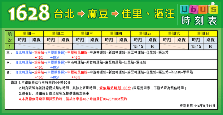 【1628】 台北 → 麻豆 → 佳里、漚汪
