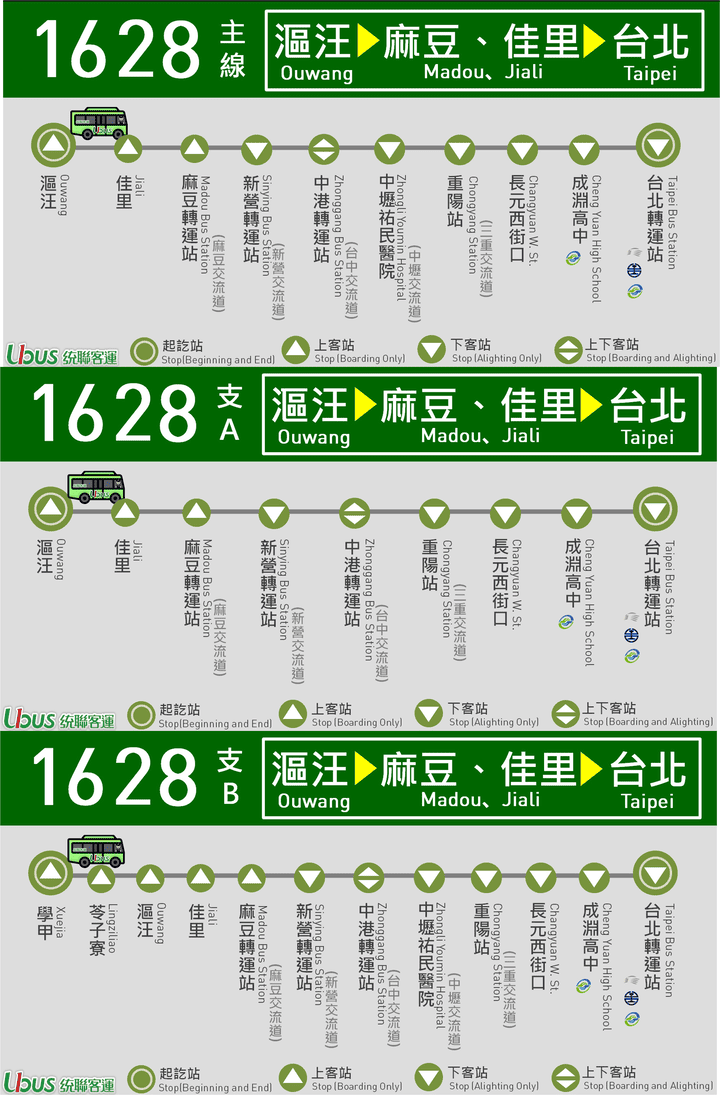配合短端售票實施,本路線再增加販售:「漚汪-中港轉運站」、「漚汪-新營」等區間。另本路線配合國道轉乘市區公車優惠:持當日國道票根於台中(中港轉運站)轉乘統聯市區公車,可免費搭乘一次。 108/2/1起,中壢站調整為招呼站,現場將無服務人員,請事先自其他場站臨櫃或超商完成取票,並至統聯客運站牌處(桃園市中壢區民族路二段170號前)候車。