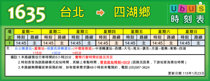 【1635】 台北 → 四湖鄉