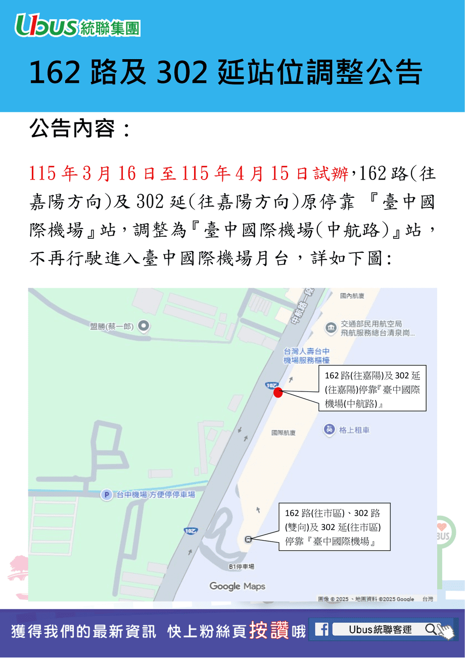 162路 及 302延 站位調整公告
